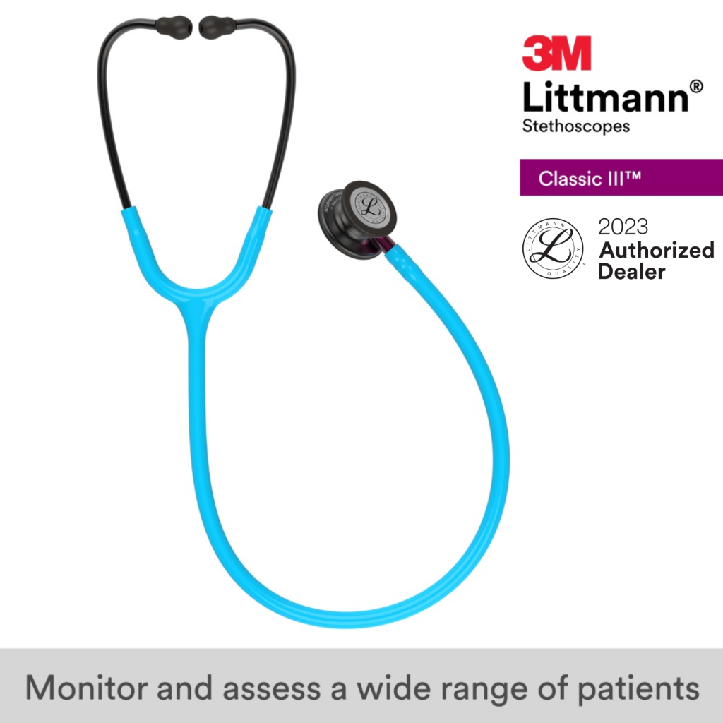 The 3M Littmann Classic III Stethoscope is the latest version of the stethoscope that helps millions of medical professionals achieve their best. The Classic III stethoscope offers high acoustic sensitivity for exceptional performance, plus a versatile two-sided chestpiece with tunable diaphragms. The Classic III stethoscope is used by students and medical professionals alike to identify, listen to, and study heart, lung, and other body sounds for physical assessment, patient monitoring, and diagnosis.